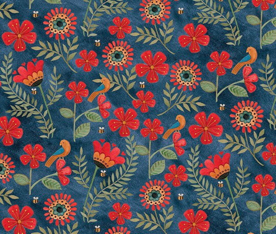 Stitchy Birds Floral Fabric By The Yard Or Half Yards 100 Etsy Australia
